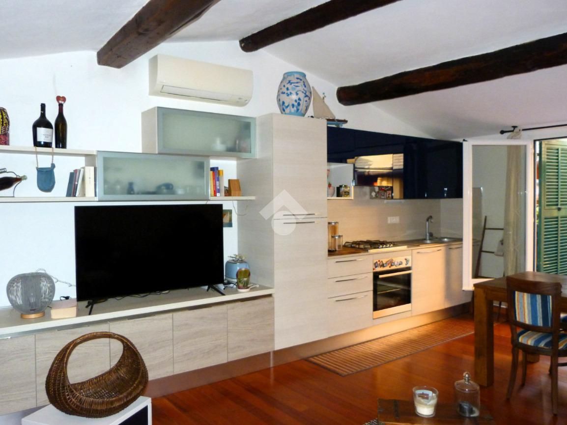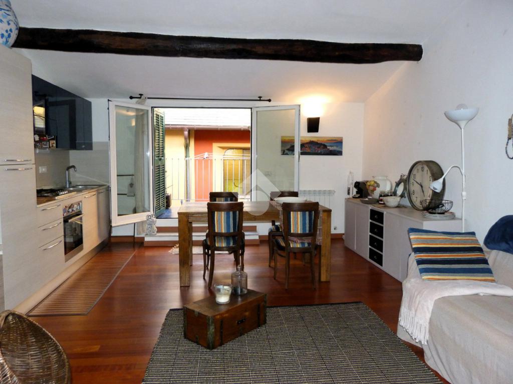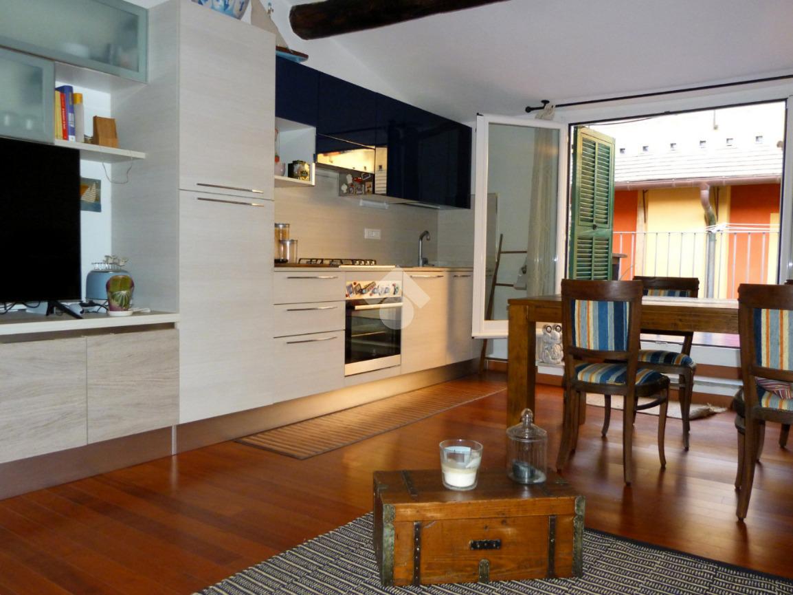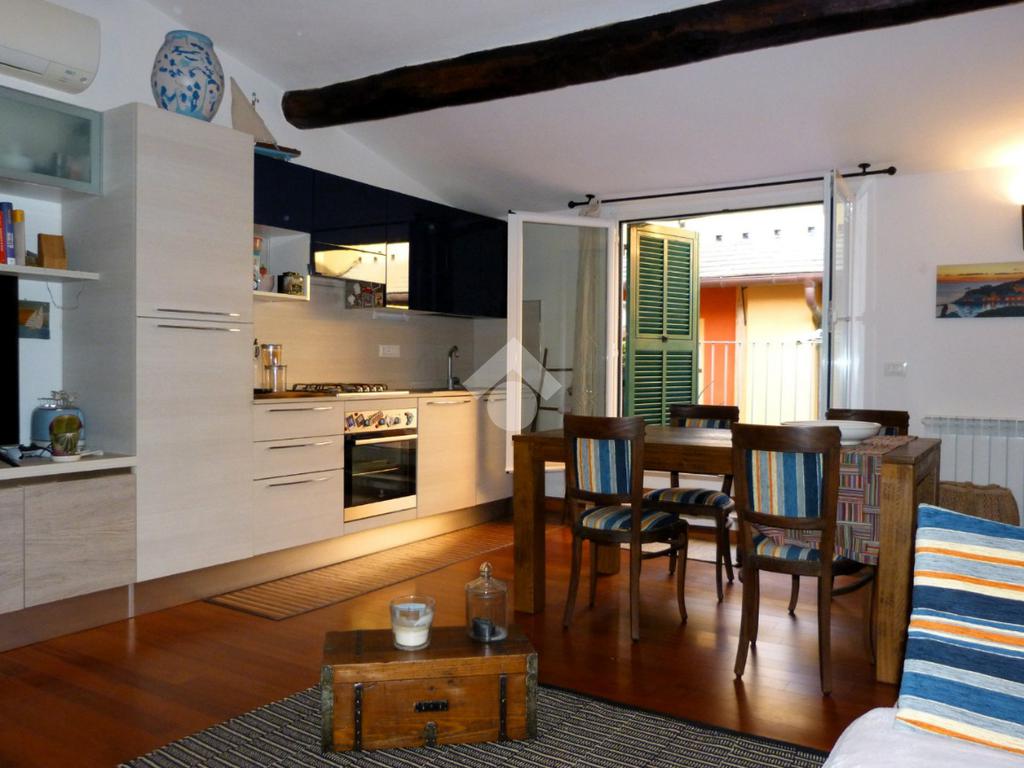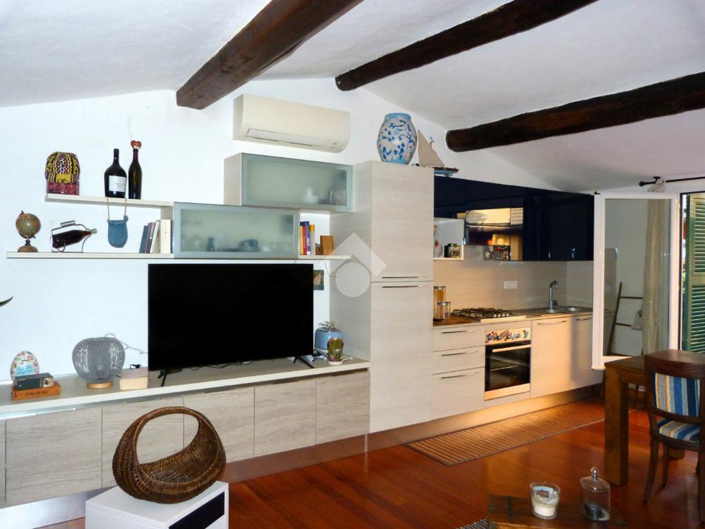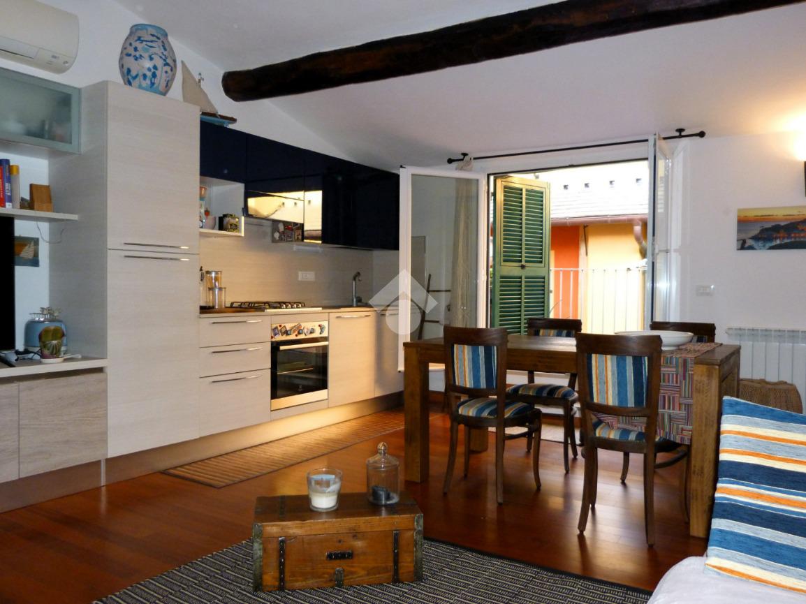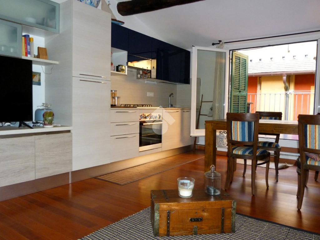 CHIAVARI, VIA RUPINARO: in palazzina d'epoca del centro storico, grazioso appartamento ristrutturato di recente, completamente arredato, su 2 livelli all'ultimo piano senza ascensore, composto da ingresso, soggiorno con cucina a vista, camera, bagno e terrazzo vivibile - Termoautonomo