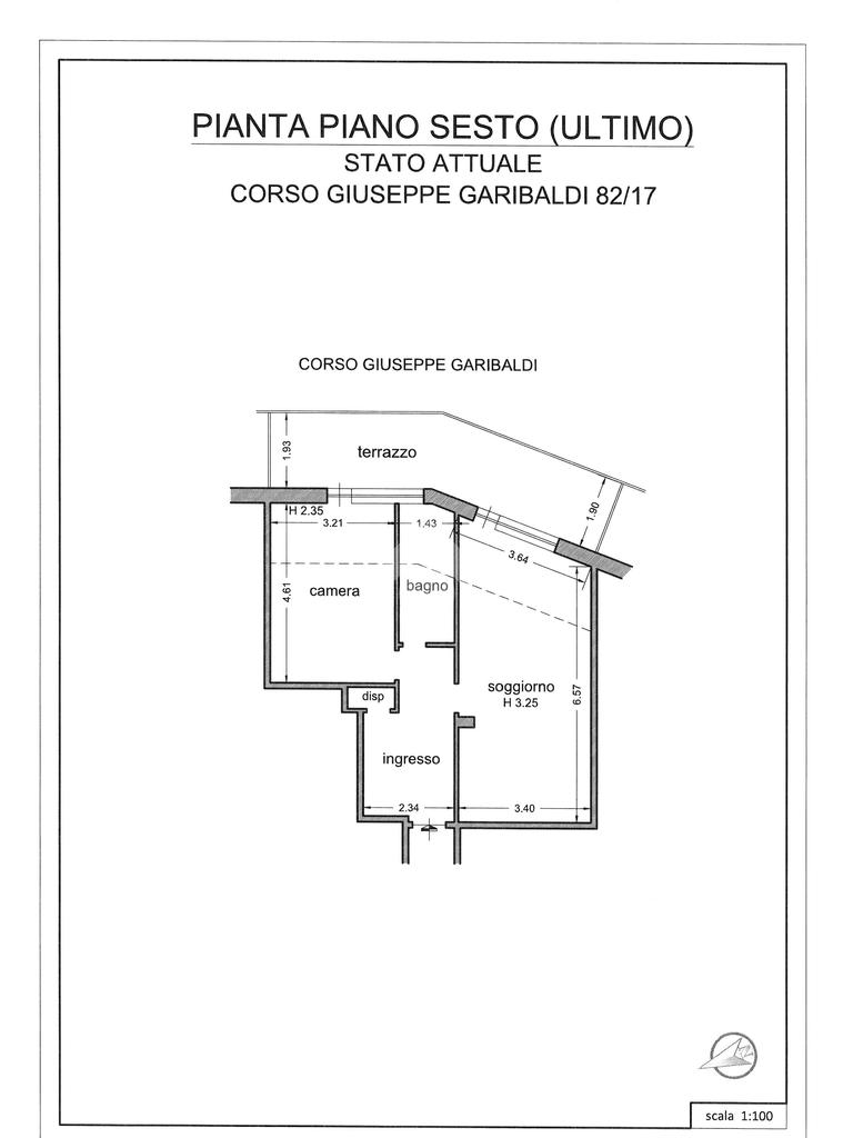 CHIAVARI, CORSO GIUSEPPE GARIBALDI: appartamento luminoso all'ultimo piano con ascensore, composto da ingresso, soggiorno con zona cottura, camera, bagno, dispensa e cantina - Terrazzo vivibile con vista mare